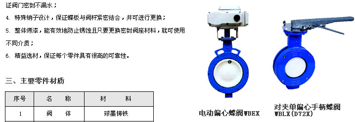 名稱:單偏心對夾手柄蝶閥(球墨)WBLX